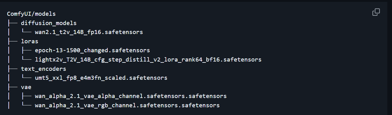 将文件复制到ComfyUI/models文件夹中,并按如下方式组织它们: