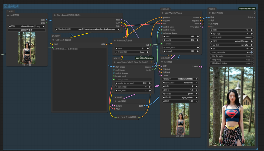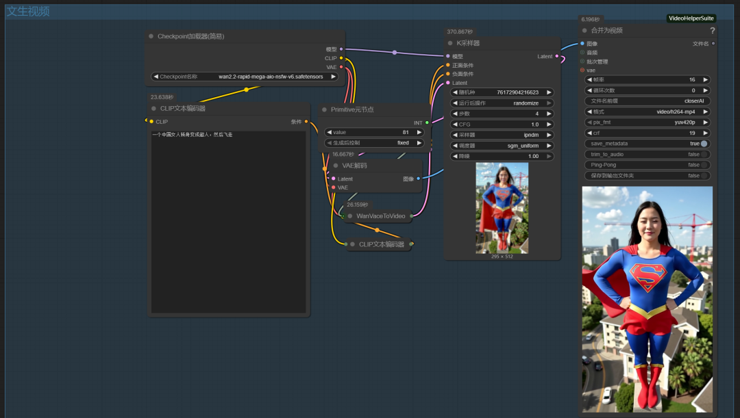 【closerAI ComfyUI】目前最棒的视频融合模型:WAN2.2-14B-Rapid-AlO MegaV6版!文生、图生、首尾帧视频生成一个模型搞掂!搞起!