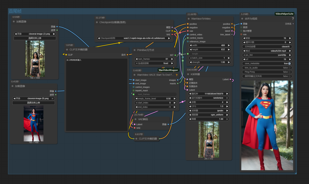 1、closerAI wan2.2 ALLINONE首尾帧视频生成工作流: