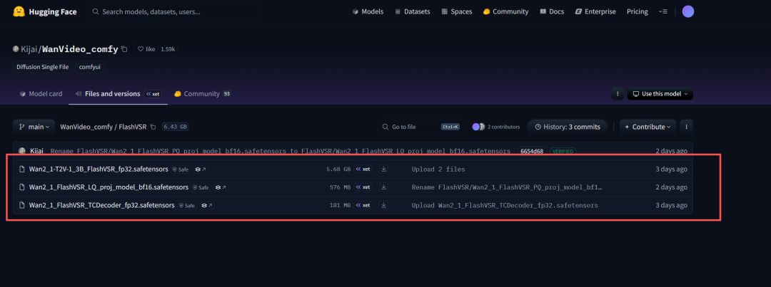 它的作用就是让视频高清化,现在社区已经在comfyUI中实现FlashVSR.有两个