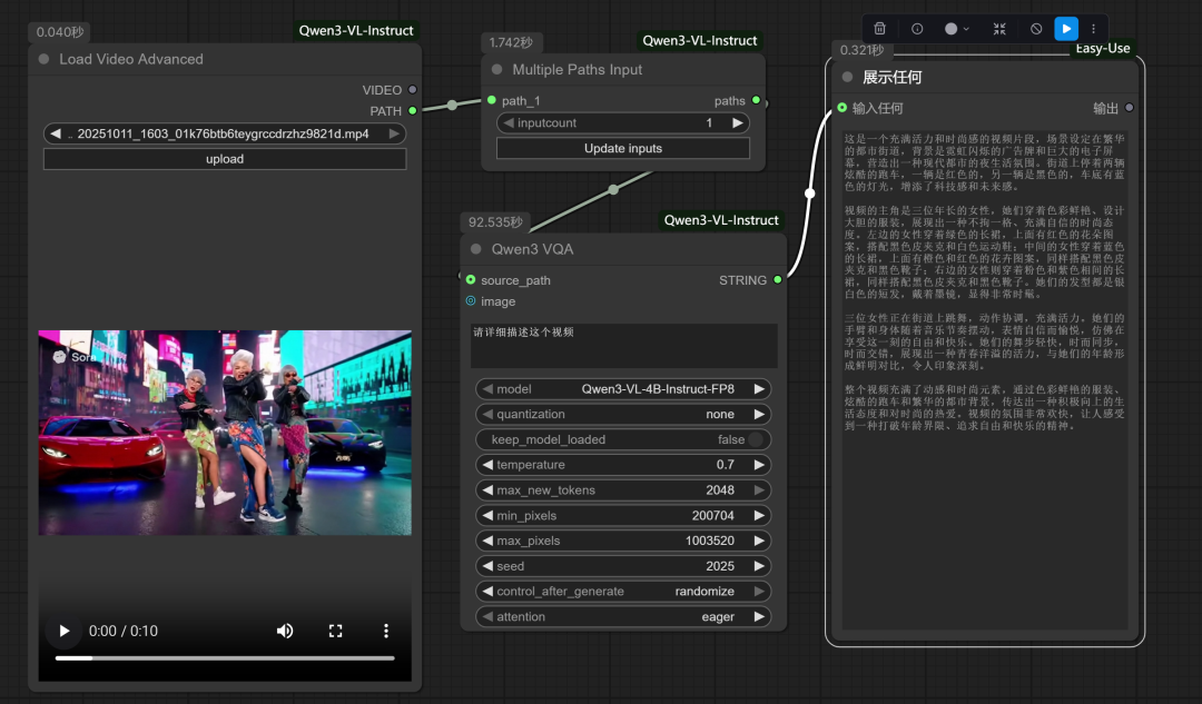 所以,在制作AI视频时候,我们如果想利用某个视频的场景,一是可以直接截图然后利用LLM进行反推提示词。二是使用qwen3-vl模型来反推(图像与视频均可)。