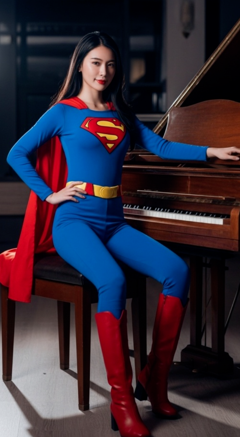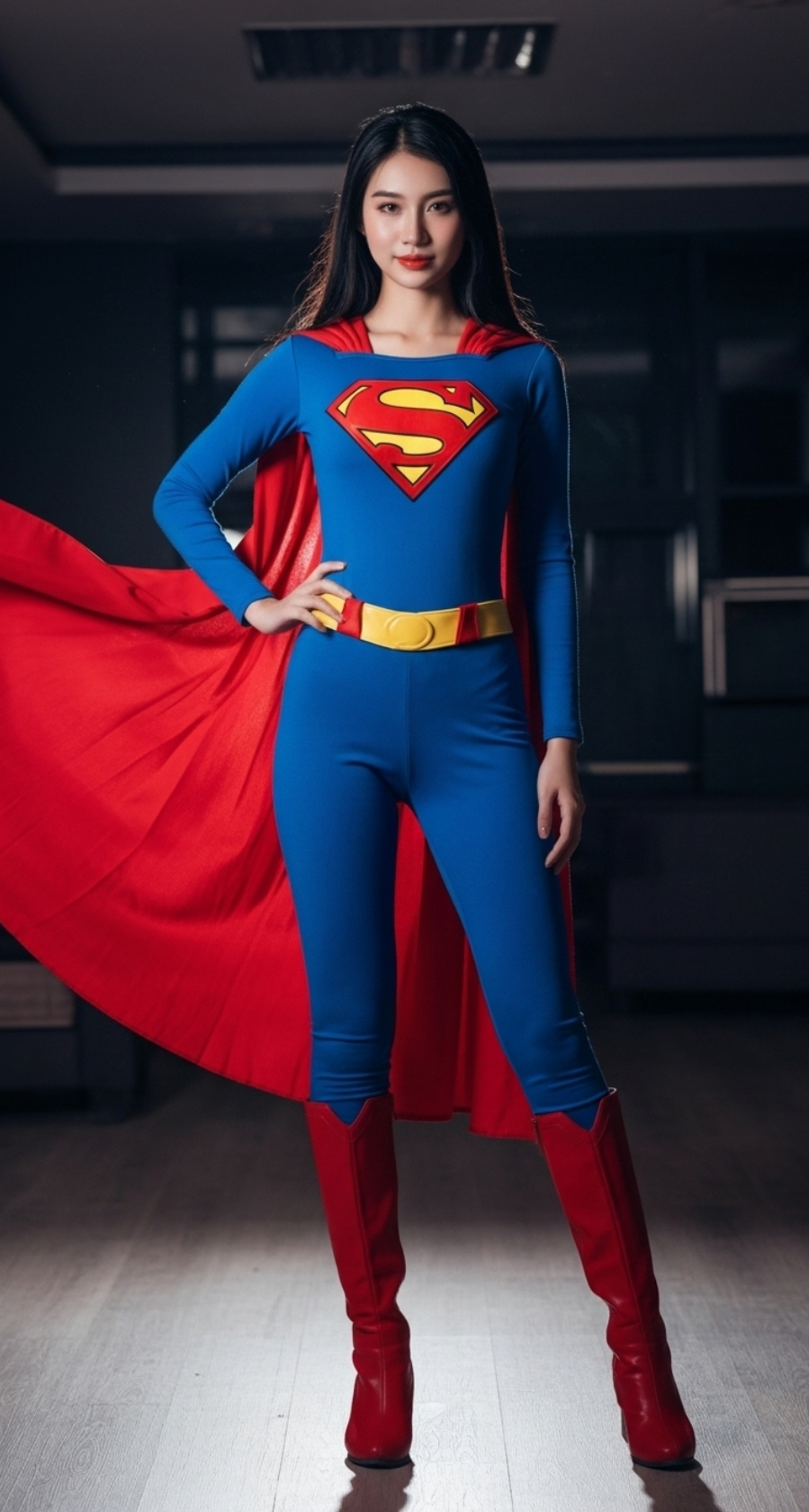 主角是一个女超人 分镜 1(2 秒):镜头从下往上,展现女超人穿着标志性服饰,立于城市高楼顶端,红色披风在夜空中猎猎作响,她低头俯瞰城市,眼神坚毅; 分镜 2(2 秒):切换到城市街道,一辆汽车失控冲向人群,危急时刻,女超人如闪电般俯冲而下,挡在车前,双手稳稳抵住车头,使其停下; 分镜 3(1 秒):人群中爆发出欢呼与掌声,女超人直起身,披风再次扬起,她抬头望向夜空,随后朝着远方飞去,留下众人的赞叹身影。