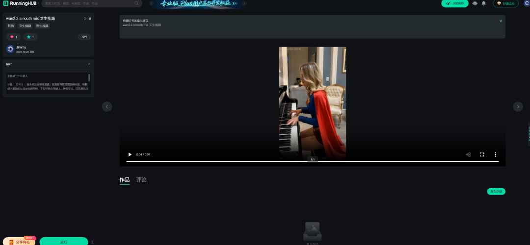 如果本地设备算力不好的小伙伴,推荐使用线上comfyUI来运行体验:runninghub.cn