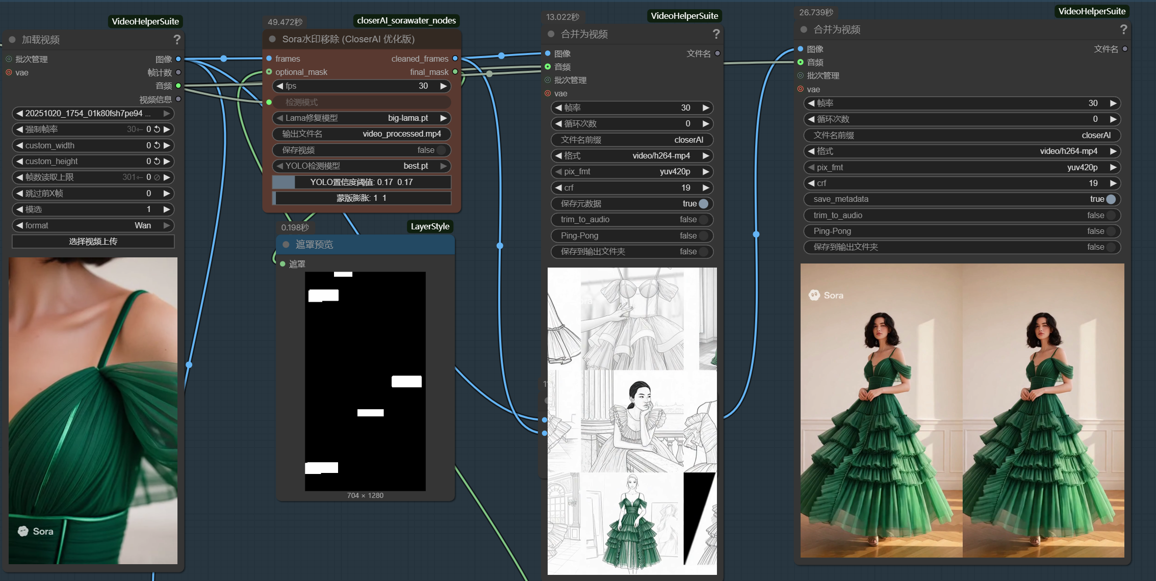 Sora 水印移除 closerAIsorawater ComfyUI 节点