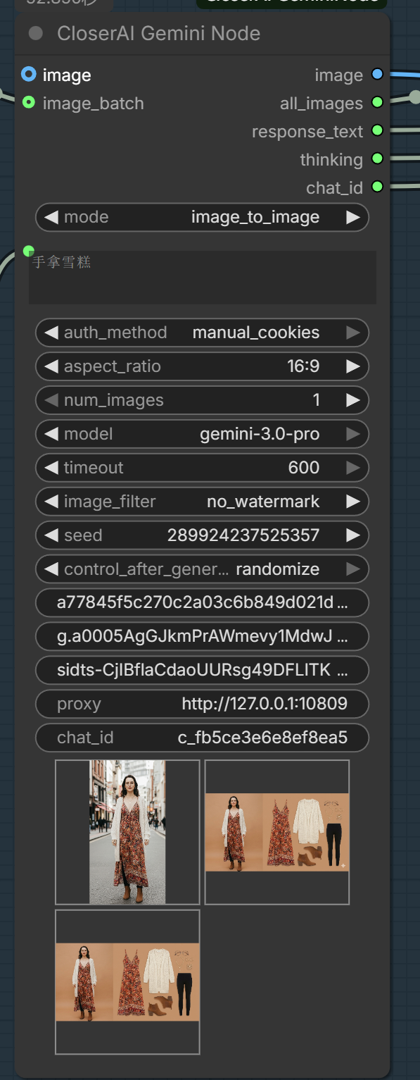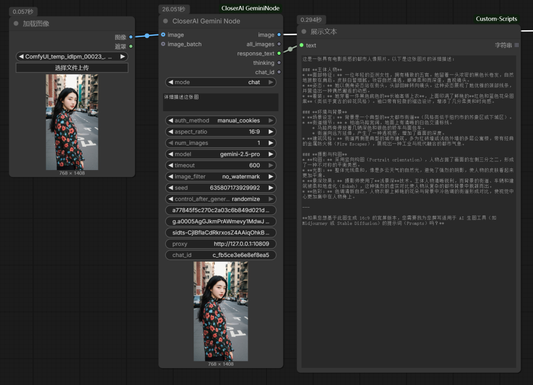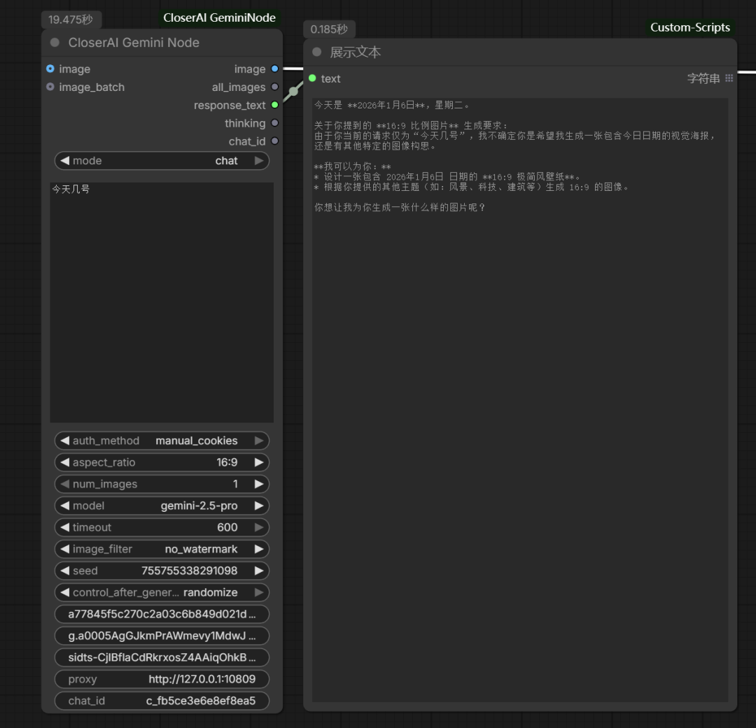 CloserAI GeminiNode是基于 ComfyUI 完美集成 Google Gemini 网页版能力。它不仅支持高质量的文生图与图生图,更通过独家的会话持久化技术,实现了在 ComfyUI 中如同网页端般自然的连续创作体验。
