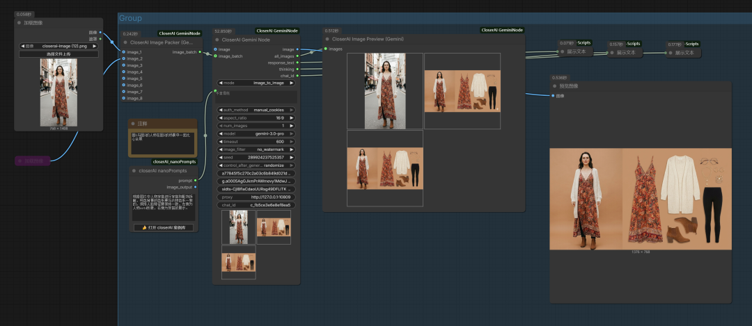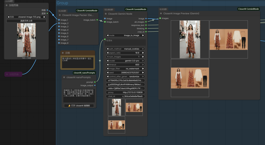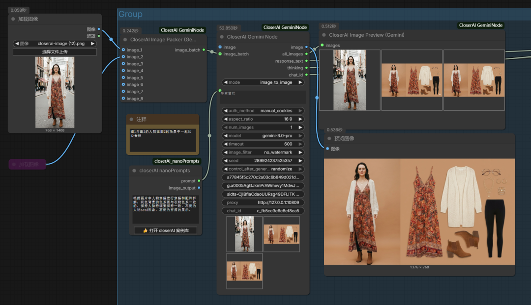 以下是closerAI NanoBananaPro(gemininodes)服装穿搭拆解工作流: