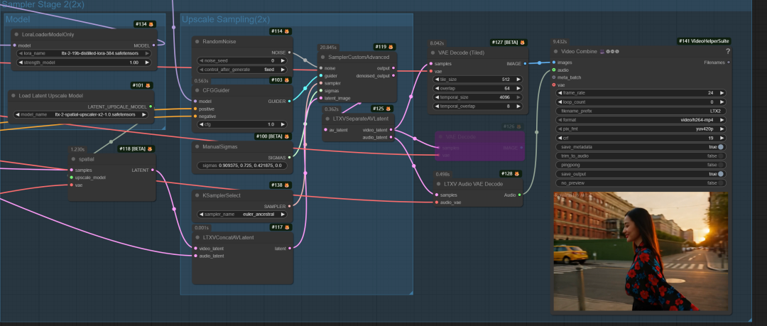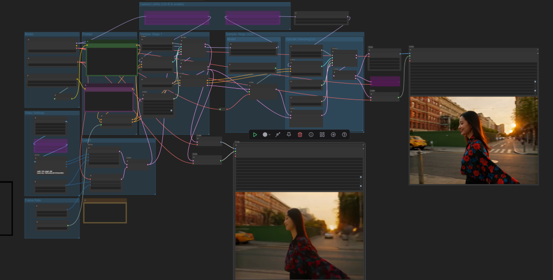 - 第二阶段调用 Spatial Upscaler 提升空间分辨率,调用 Temporal Upscaler 提升帧率至 50 FPS。