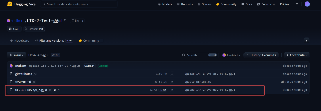 目前,本地运行,相对还是吃力,特别是低配置的,要等社区的GGUF量化模型出来。不过好消息是,有一个出来了:https://huggingface.co/smthem/LTX-2-Test-gguf/tree/main