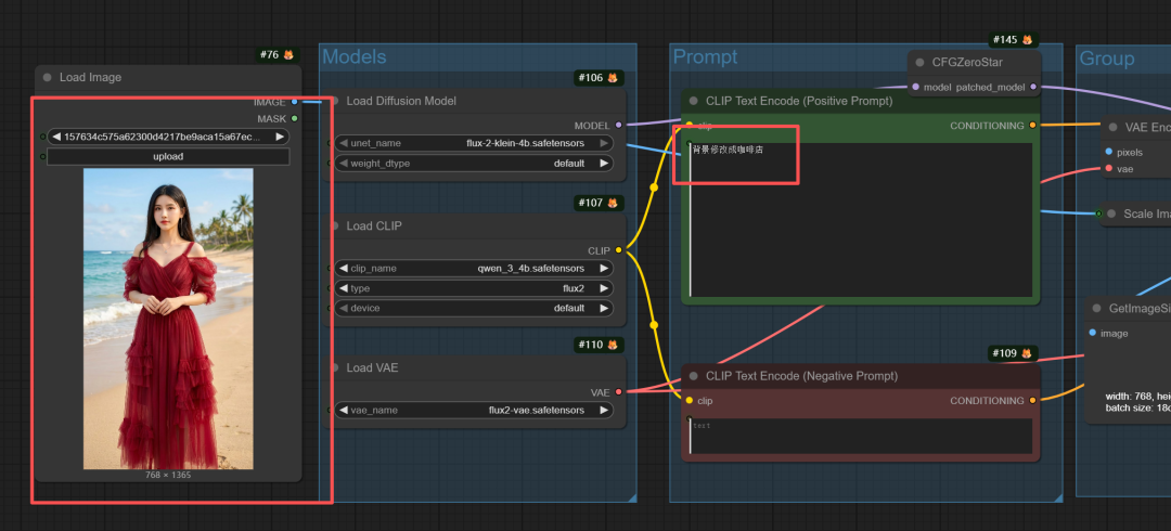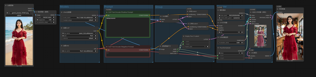 平均:26秒多,是很快。 flux2 klein 4B 图编辑工作流如下: 以下是单图编辑工作流: