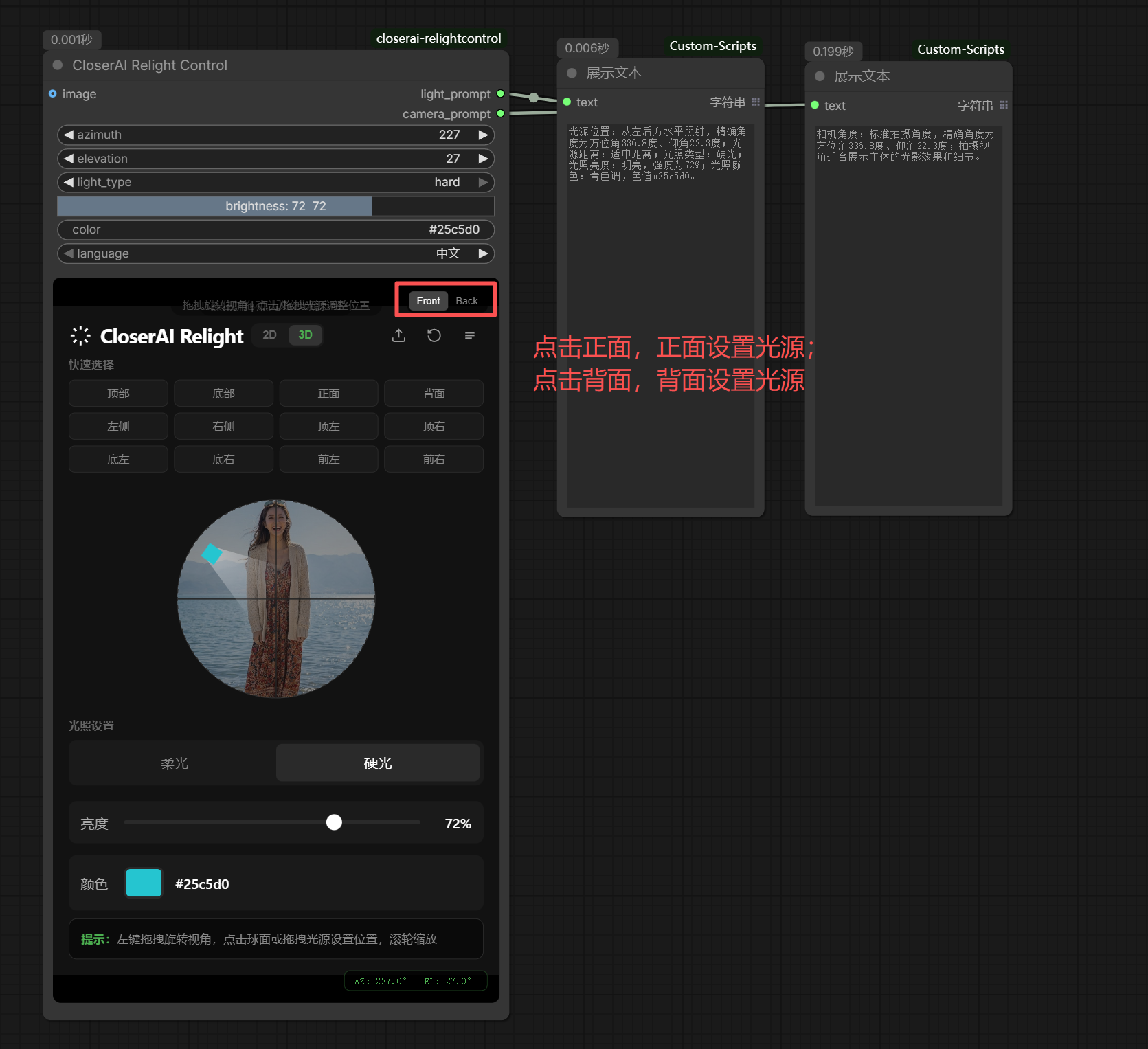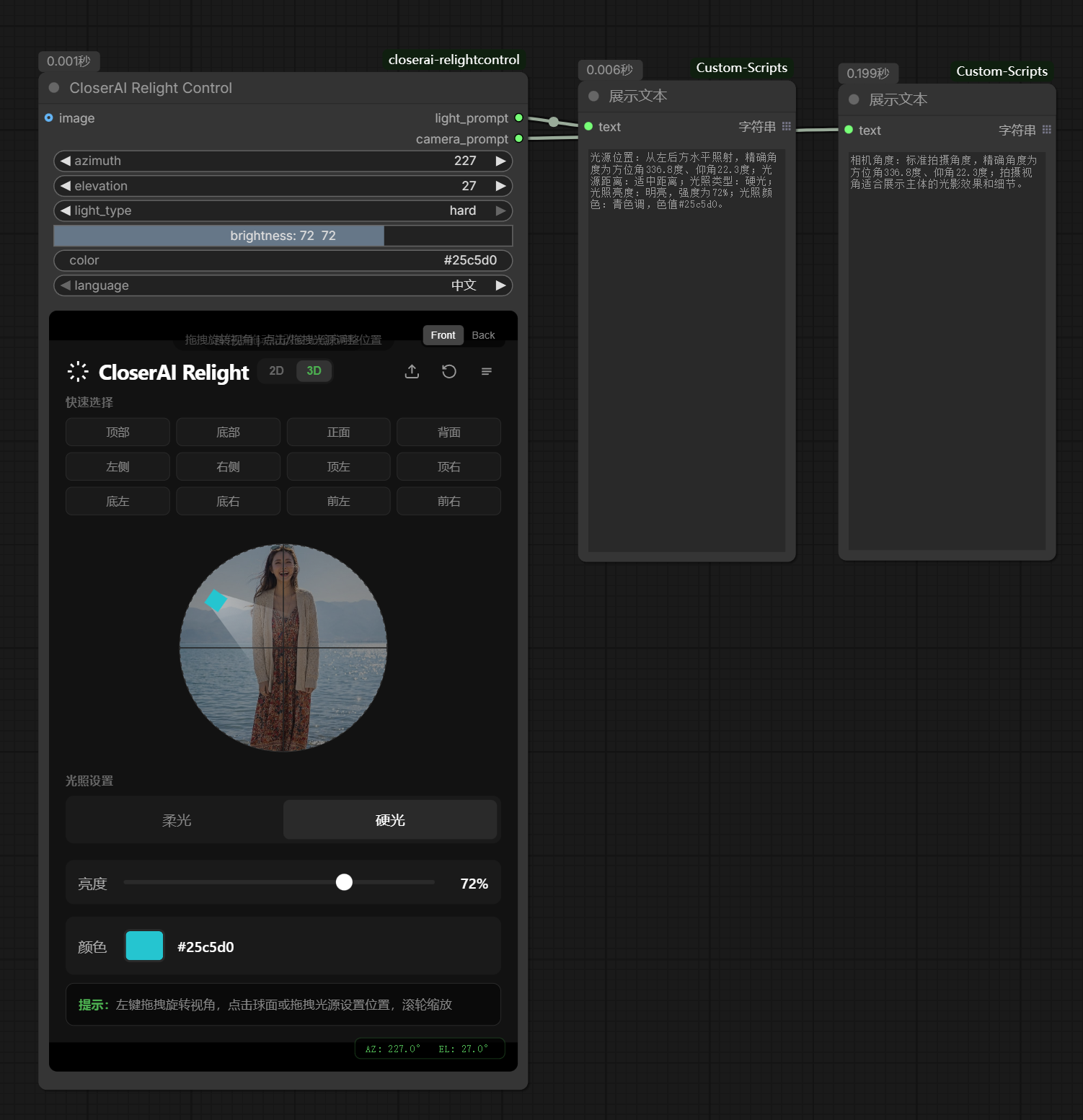 | 输出 (Output) | light_prompt | 输出详细的灯光位置、性质、颜色及亮度描述字符串。 |