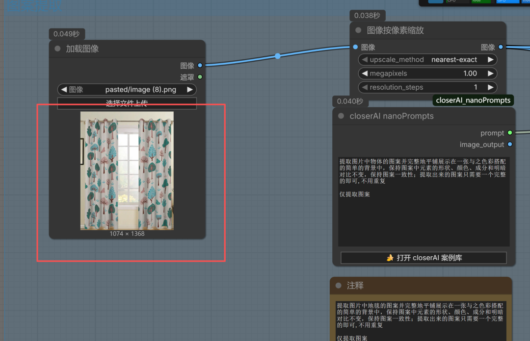 以下是图案提取工作流:
