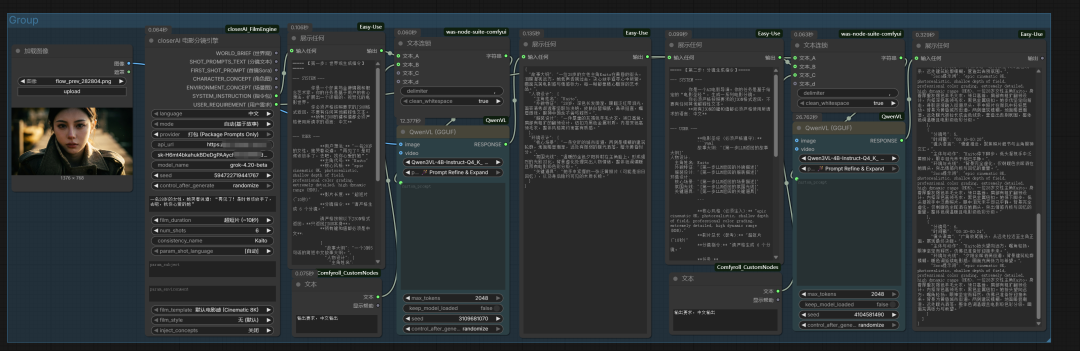 但这次我希望是带参考图的提示词生成。我就没优化节点,直接用这个节点输出指令,然后接入qwen3-VL来进行生成。