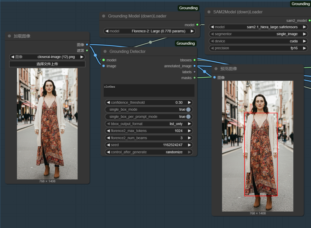 万物检测与分割之前往期也介绍过sam2等,更有优秀的项目做过一些整合方便使用,但是由于比较分散,一个项目安装一套节点和对应模型,太麻烦。今天发现一个很好的项目,大统一了接口,整合起来。使用非常方便,它就是:ComfyUI-Grounding 。
