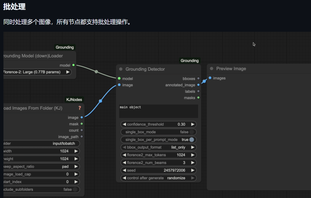 - 丰富的节点:共包含 8 个节点,分别是 2 个加载器、2 个检测器、2 个 SAM2 相关节点和 2 个工具节点。