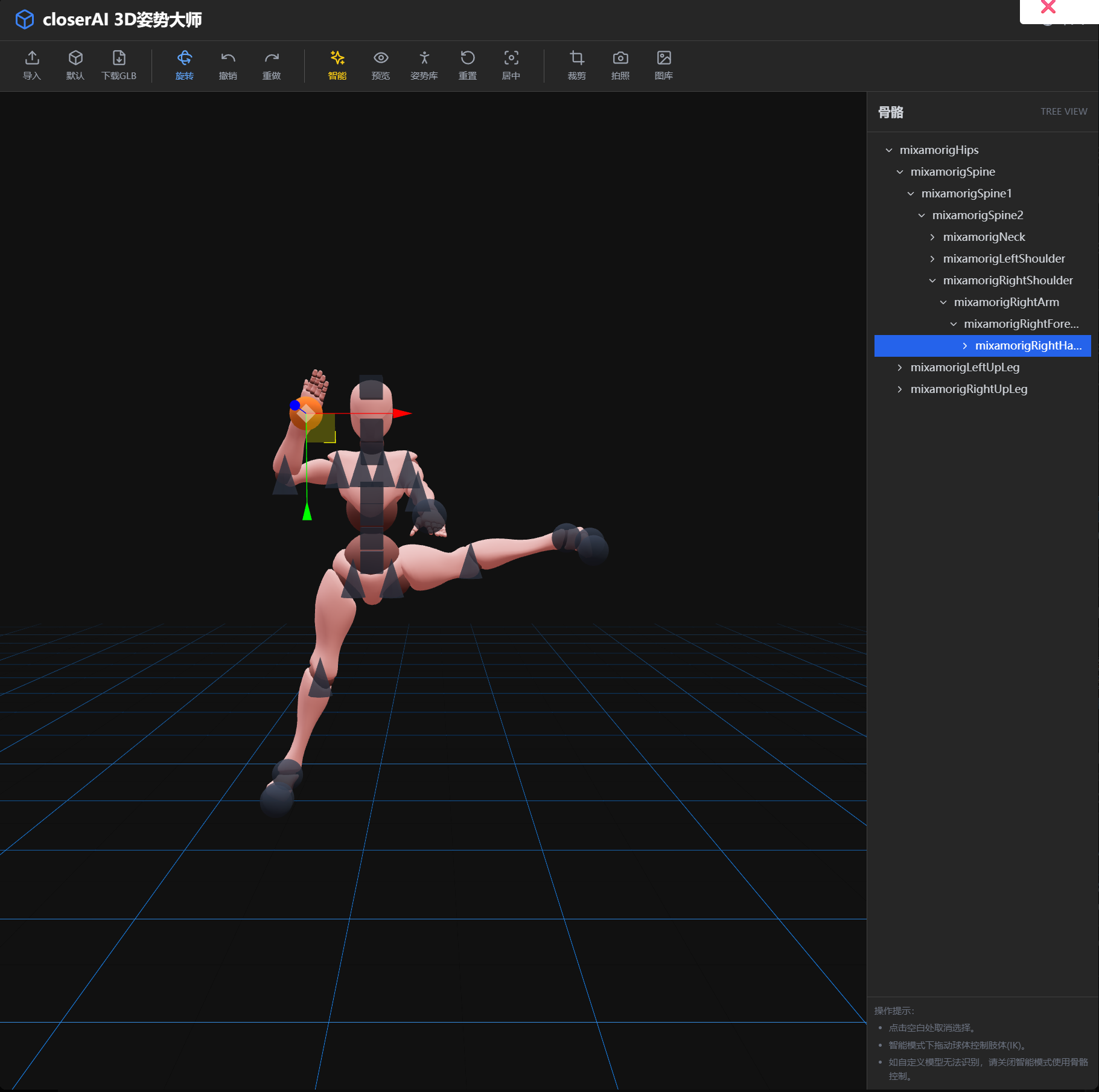 - 选择骨骼:点击模型身体部位(高亮即选中)。