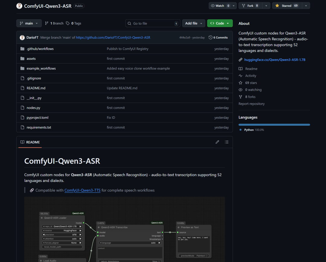 项目链接:https://github.com/DarioFT/ComfyUI-Qwen3-ASR