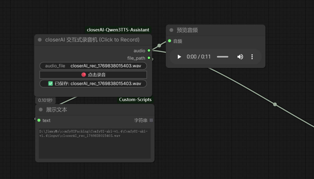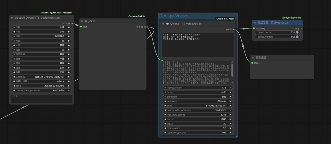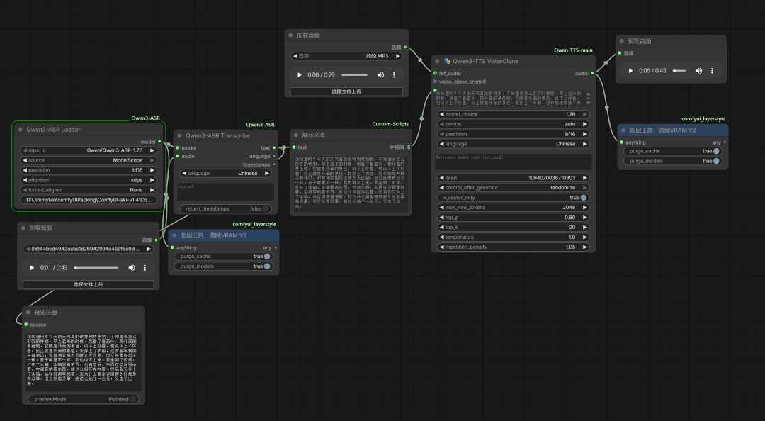 以上是closerAI团队制作的stable diffusion comfyUI closerAI-qwen3TTS+ASR音频转文本+文本转音频工作流,我们closerAI会员站上获取(查看原文)。