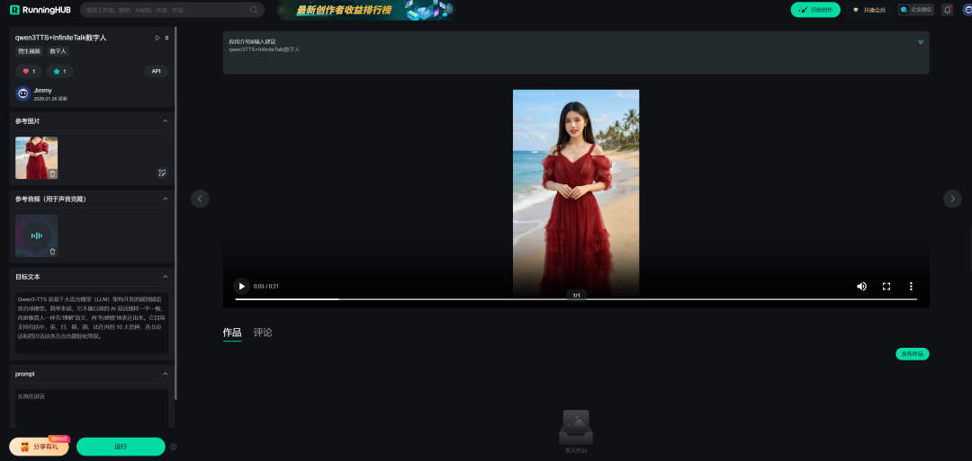 qwen3TTS+InfiniteTalk数字人应用体验地址: