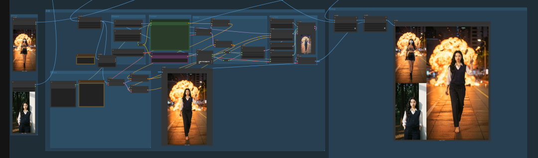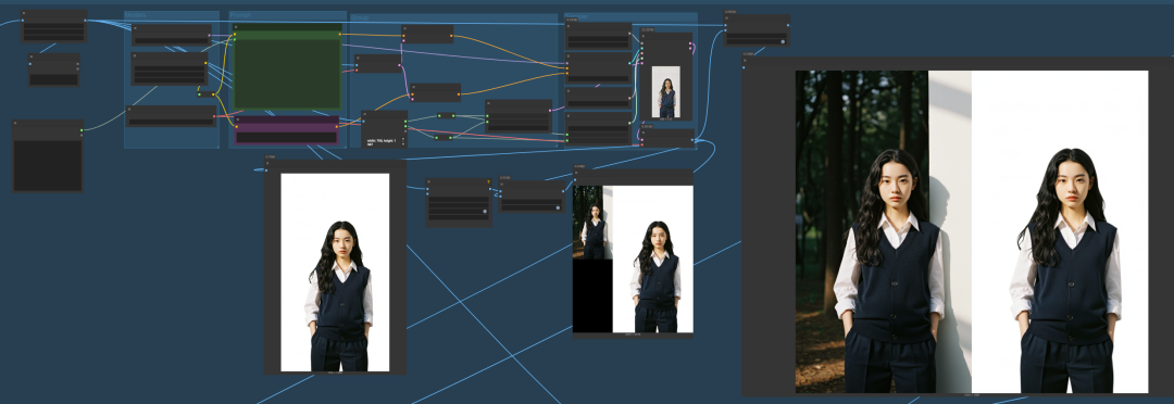 这期,继续巧用一些方法,实现人物完美迁移,包括人物特征、衣物细节、人物姿势、光影、视觉等。当然,这也是基于flux2 klein来实现。