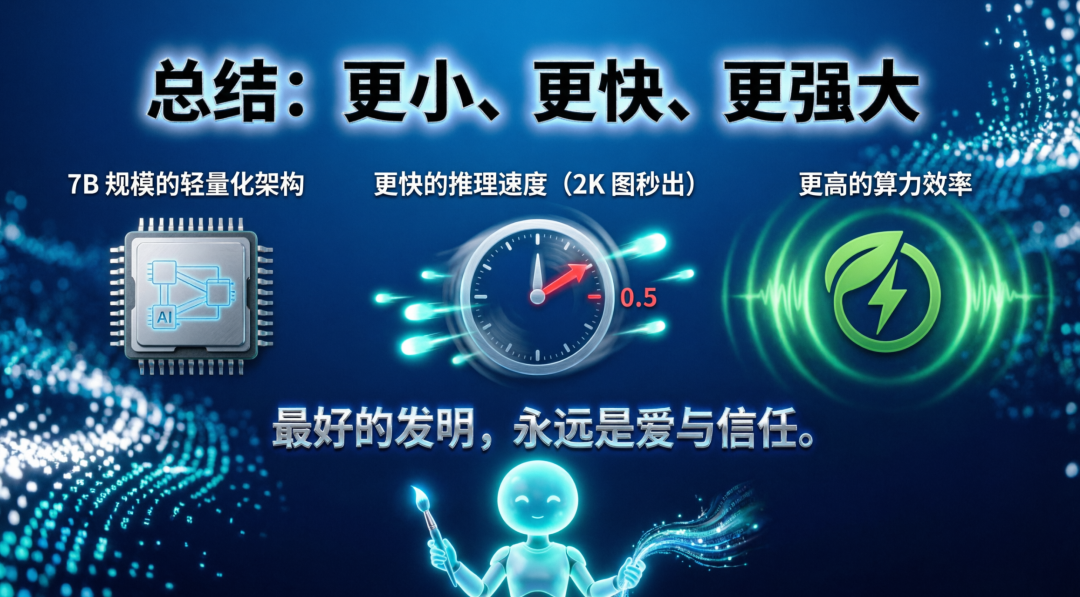 “最好的发明,永远是爱与信任。” 正如模型生成的漫画结尾所言,Qwen-Image-2.0 不仅仅是一个工具,它更是理解人类创意、辅助人类表达的智慧伴侣。