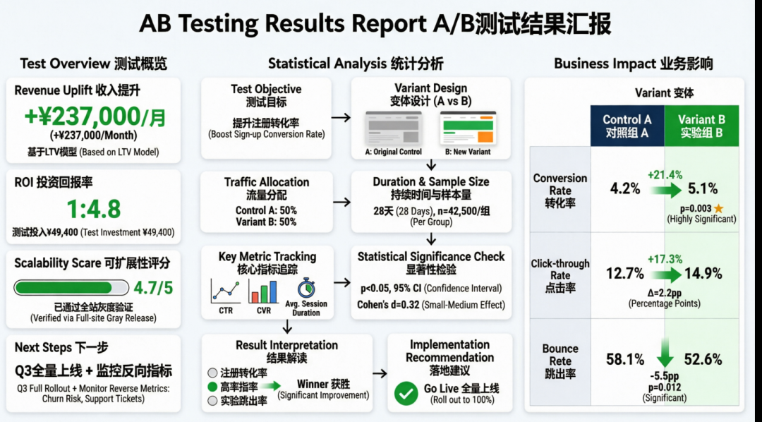 得益于对超长指令的支持,你可以要求它生成一份包含 A/B 测试结果、ROI 数据、流程图和饼图的完整汇报页,它能将上千字的信息有条不紊地排布在画面中。
