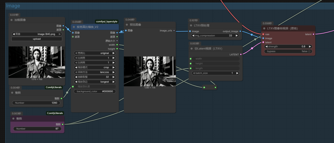 以下是图生视频的效果,尺寸1280*768,97帧: