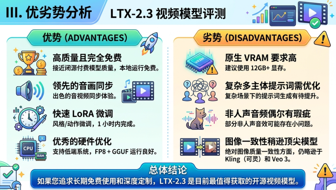 结论:如果你追求长期免费使用和深度定制,LTX-2.3是当前最值得入手的开源视频模型。