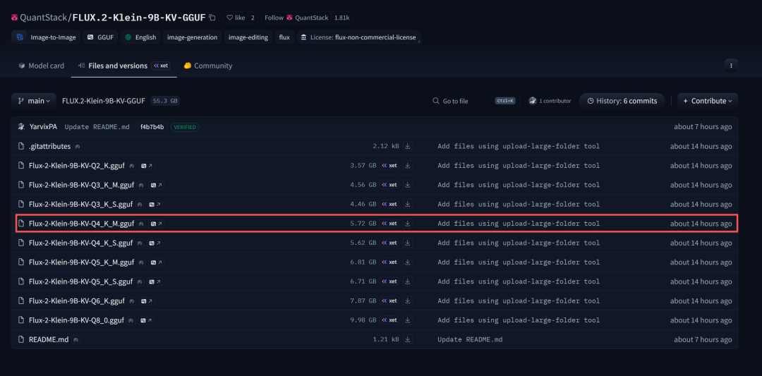 地址:https://huggingface.co/QuantStack/FLUX.2-Klein-9B-KV-GGUF