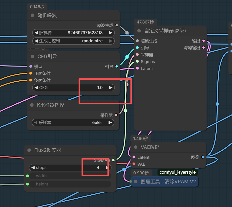 然后因为是蒸馏版本的flux2 klein 9B-kv模型,所以它是4步 1CFG的设置