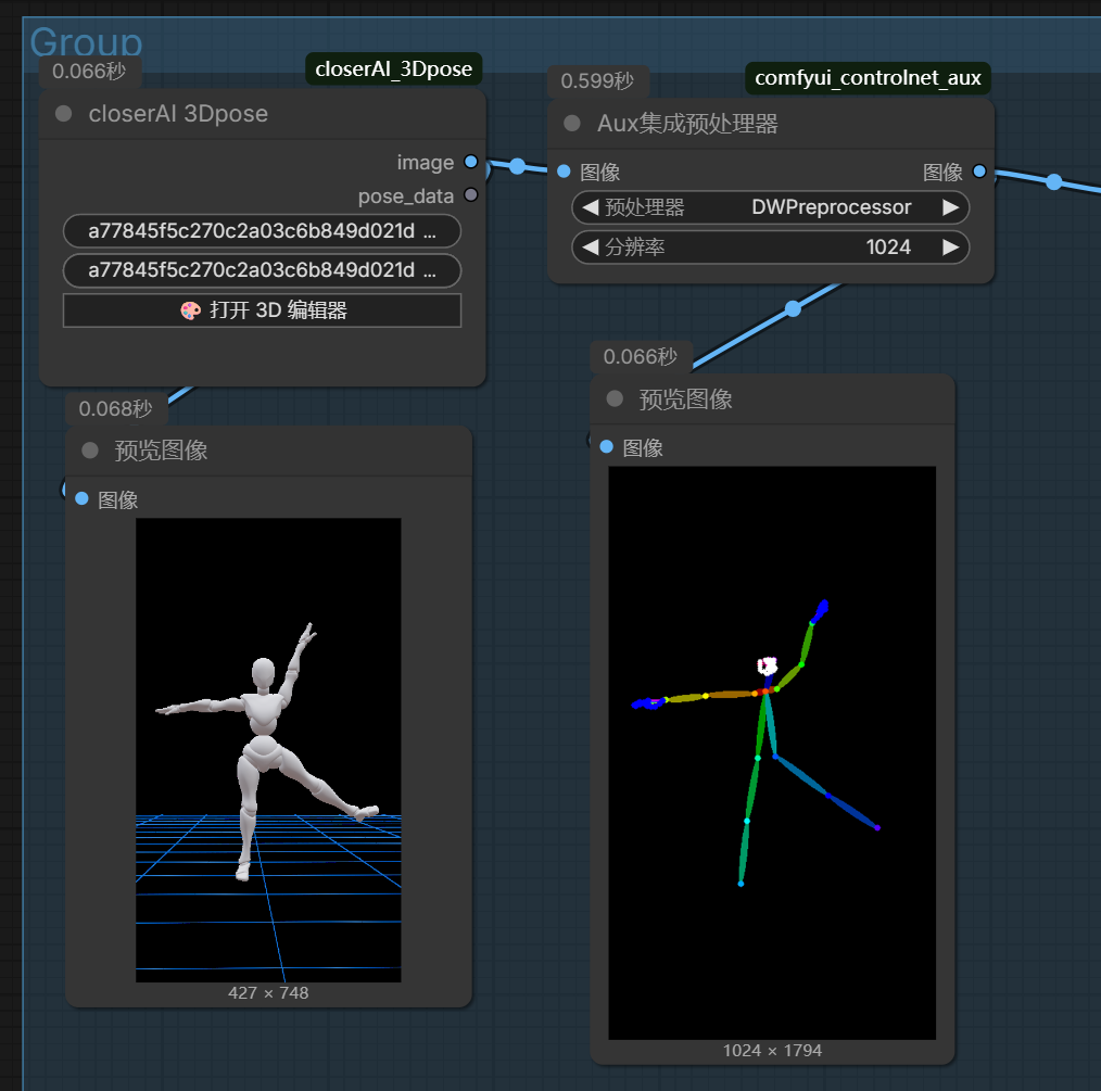 这里使用到我开发的closerAI 3D pose节点(好久没更新优化这个节点,想法很多,工作量也有些大)