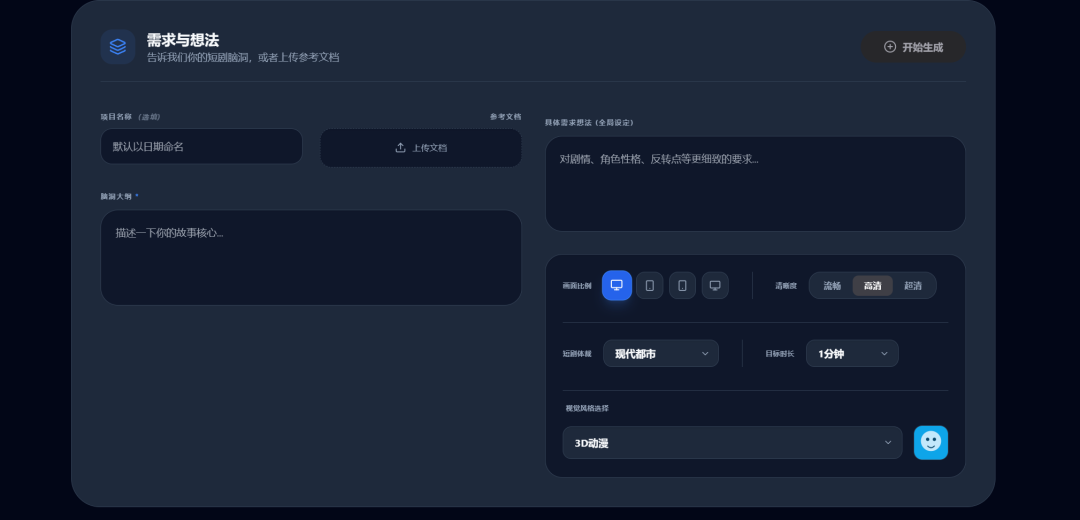 首先用户输入想法:可以是一小段文本,可以是一个剧本文档: