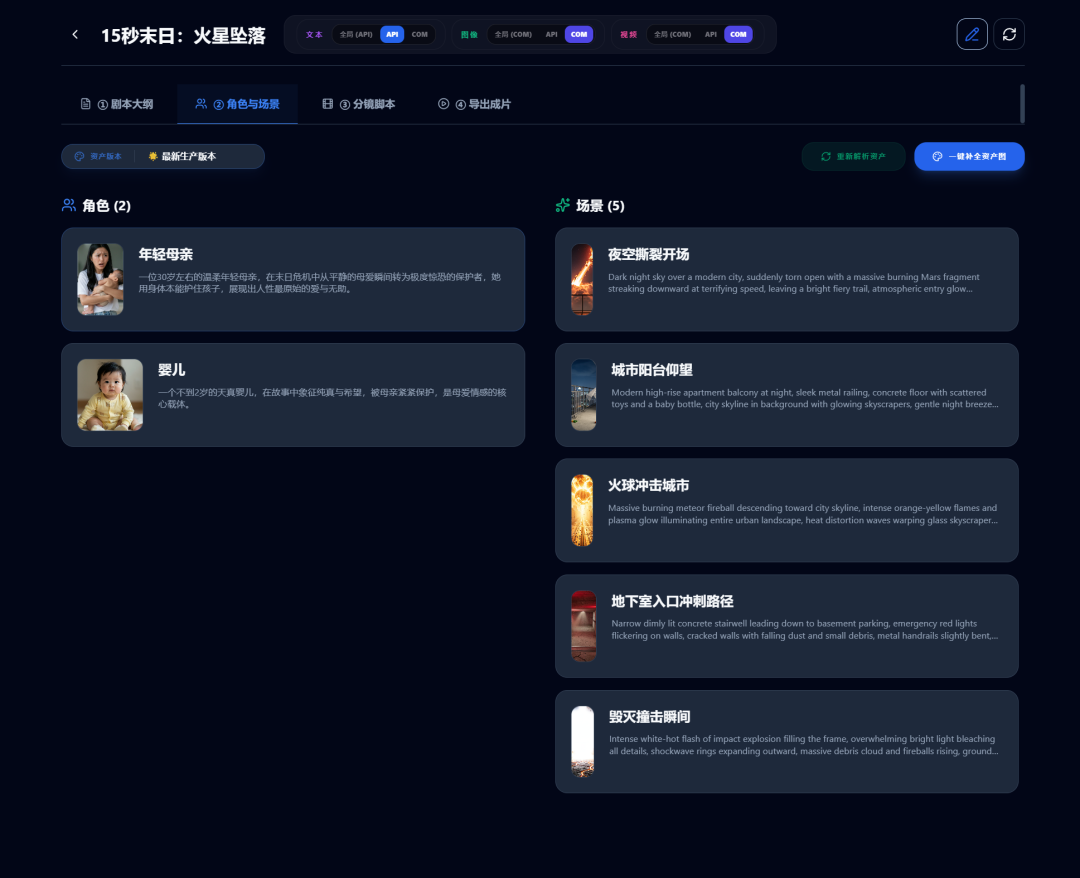 | 总制片 | StoryPlanner | 将碎片化的灵感转化为具备商业价值的剧本蓝图。负责“钩子”设计、节奏规划。 | 标题、剧本总大纲、各集概要、风格 ID 确定。 |