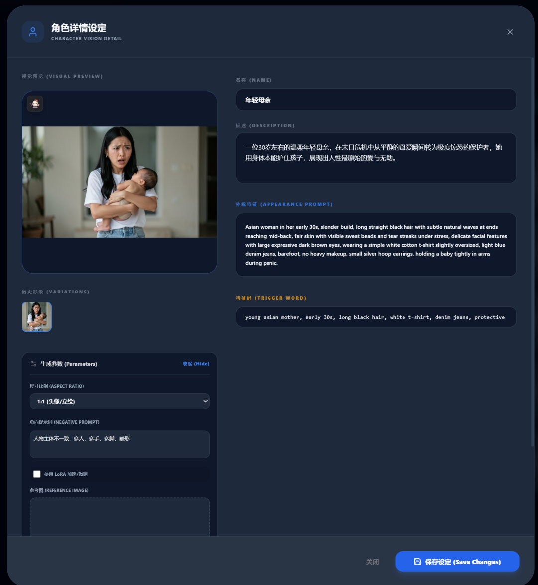 资产一致性关联 (Asset Consistency):通过 CharacterDesigner 提前锁定视觉身份,后续所有分镜都会自动关联这些预设资产。