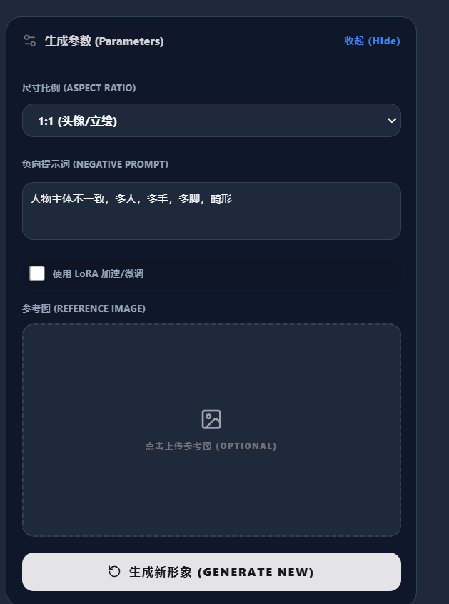 回到角色与场景的模块,支持一键生产资产图的功能,因为在Agent中,已经直接产出角色描述、文生图提示词,设置支持有参考图的图生图如果你有要用的角色,直接上传后,Agent会判断出是参考生图。