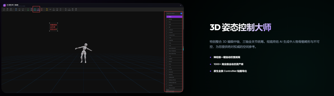 3Dpose姿势编辑:这次还加入了新功能,骨骼绑定内置一些动作动画